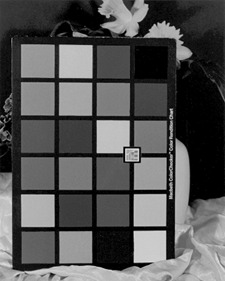 For color-negative printing, start with the filter pack you'd use to make a Portra III print. Because Ektamax's contrast is linked to its color balance, you can't fine-tune both contrast and color rendition. The spectral response of the Ektamax paper is excellent, but juggling the contrast and the color response presents problems. For instance, the Macbeth chart photograph from the Reala negative (Figure 9-10) renders reds too light when the contrast is best. The print with the best color rendition was too flat. Panalure printed this negative better.