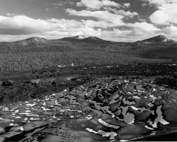 Figure 9-8 This print on Panalure M paper, printed with 50 CC red filtration, closely matches the tones in Plate 3. It's a very good B&W interpretation of the photograph. Mt. Lassen is clearly separated from the blue sky, and the yellow-orange slopes take on their proper tones.